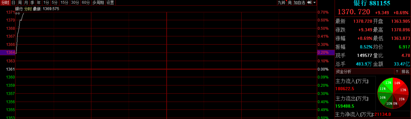 09:34 银行板块逆势走强,农业银行涨超1%,再创历史新高。重庆银行、光大银行、中信银行等涨幅靠前。