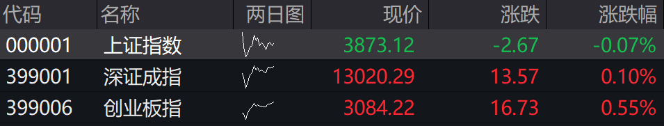 沪指低开0.07%,深成指高开0.10%,创业板指高开0.55%。