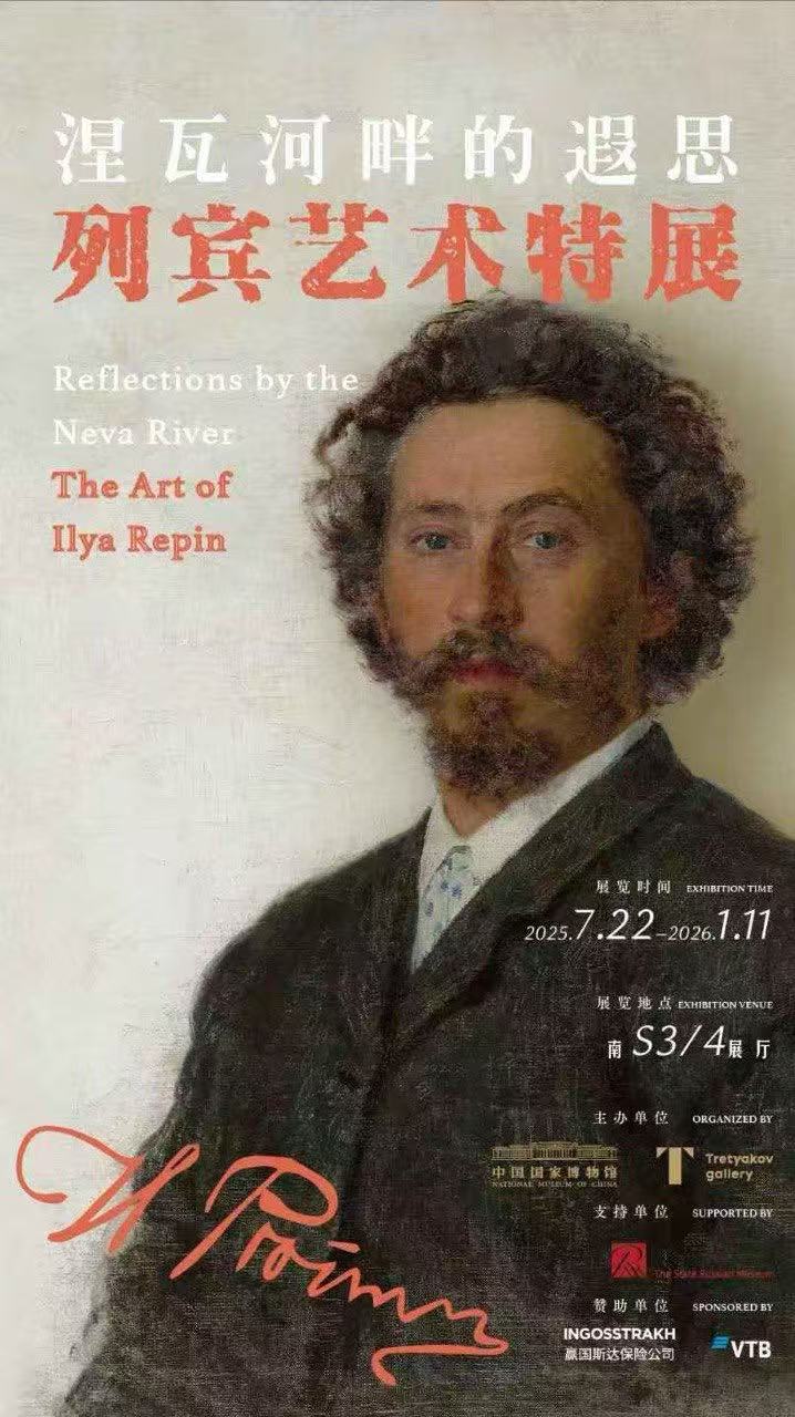 2025年7月22日至2026年1月11日,中国国家博物馆举办“伊利亚·列宾:捏娃儿河畔的遐思”特列季亚科夫画廊精品展,这是中俄博物馆合作史上规模最大的列宾主题展览之一。展览汇集了特列季亚科夫画廊的45幅油画、44件平面作品以及俄罗斯博物馆的3幅帆布画作,按时间顺序完整呈现了这位艺术大师的创作生涯。列宾以其标志性的写实风格摒弃理想化表达,通过作品真实再现了俄罗斯人的劳作与休憩、沉思与庆典、相聚与别离等生活场景。