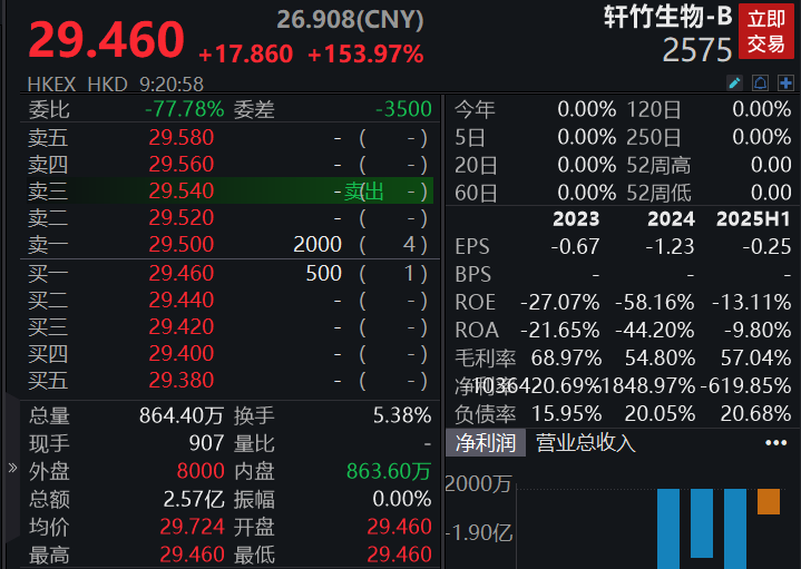 09:22 港股新股轩竹生物-B高开153.97%,其发售价为每股H股11.60港元。消息面上,公司有超过十种药物资产在开发中,涵盖消化系统疾病、肿瘤和非酒精性脂肪性肝炎(NASH)。