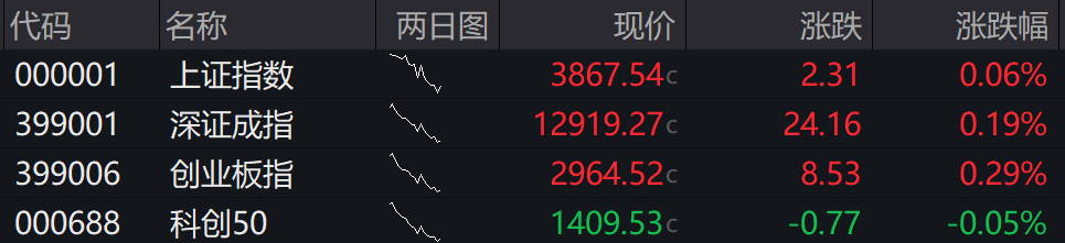 上证指数涨0.06%,深证成指涨0.19%,创业板指涨0.29%。