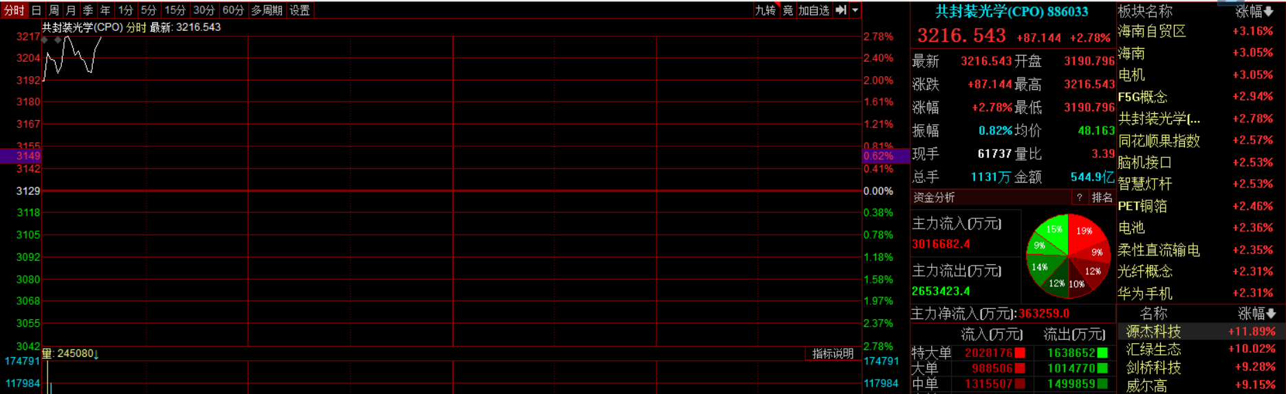 09:44 CPO概念震荡拉升,汇绿生态、剑桥科技涨停,源杰科技、天孚通信、中际旭创、新易盛、青山纸业、长光华芯涨超5%。