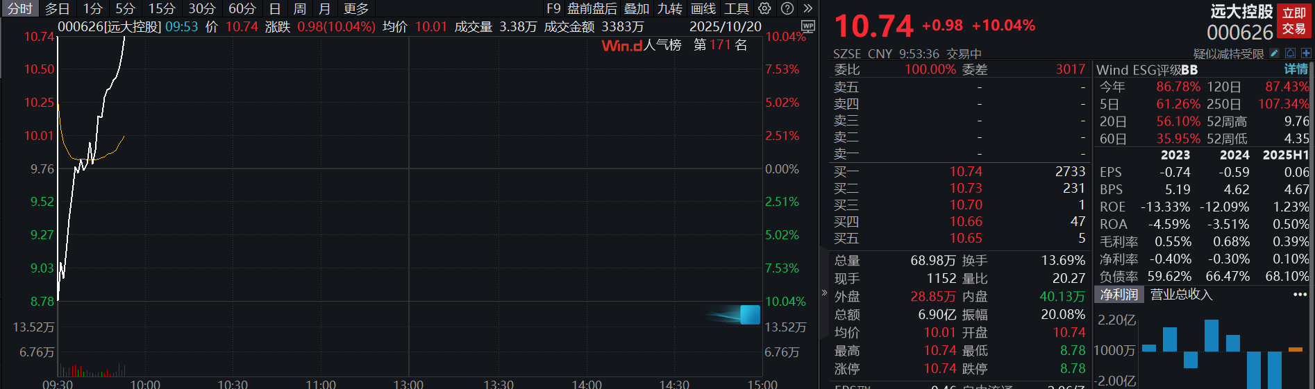 09:53 远大控股盘中大幅波动,上演“天地天板”,成交额超6亿元。