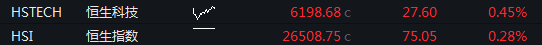 恒指高开0.28%,恒生科技指数涨0.45%。科网股多数上扬,小鹏汽车涨超4%。贵金属普跌,山东黄金、招金矿业跌近2%。八马茶业上市首日大幅高开60%。
