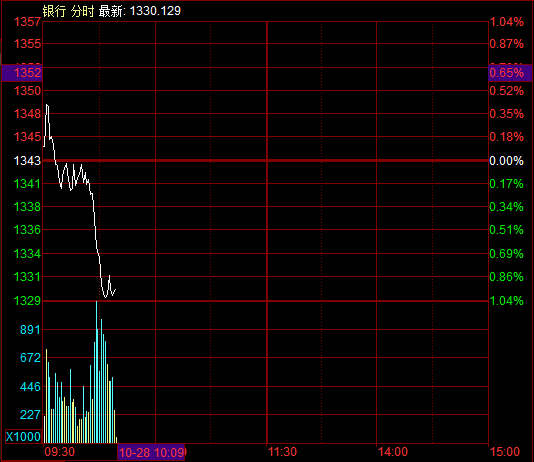 09:50 银行股走势分化,农业银行涨超1%再创历史新高,总市值逼近3万亿大关;邮储银行、工商银行跟涨,浦发银行跳水跌超4%。