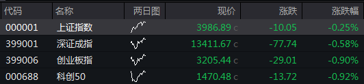 沪指开跌0.25%,深证成指开跌0.58%,创业板指开跌0.9%。