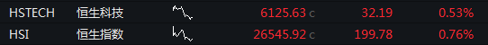 09:22 港股开盘丨恒生指数高开0.76%