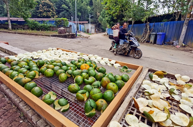 10月29日,广西钦州市浦北县龙门镇农户在房前屋后晾晒陈皮。摄影/章轲