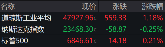 当地时间周二,美国股市涨跌不一,截至收盘,道指涨1.18%,标普500指数涨0.21%,纳指跌0.25%。
