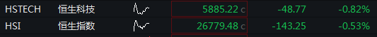 09:22 港股开盘丨恒生指数低开0.53%