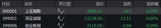 沪指低开0.09%,深成指低开0.09%,创业板指低开0.09%。