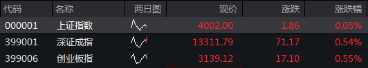 09:50 A股三大指数全线翻红,沪指上涨0.05%,深证成指上涨0.54%,创业板指上涨0.55%。