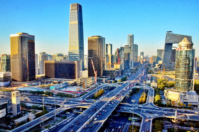 我国顺风车通勤效率连续三年提升。图为北京CBD交通景观。摄影/章轲