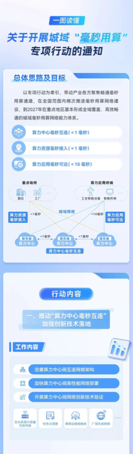 就在10月中旬,工信部发布关于开展城域“毫秒用算”专项行动的通知,提出聚焦算力网络发展,构建高速大容量、确定低时延、泛在广覆盖的城域网络,在城域内提供毫秒级算力资源网络通达能力。