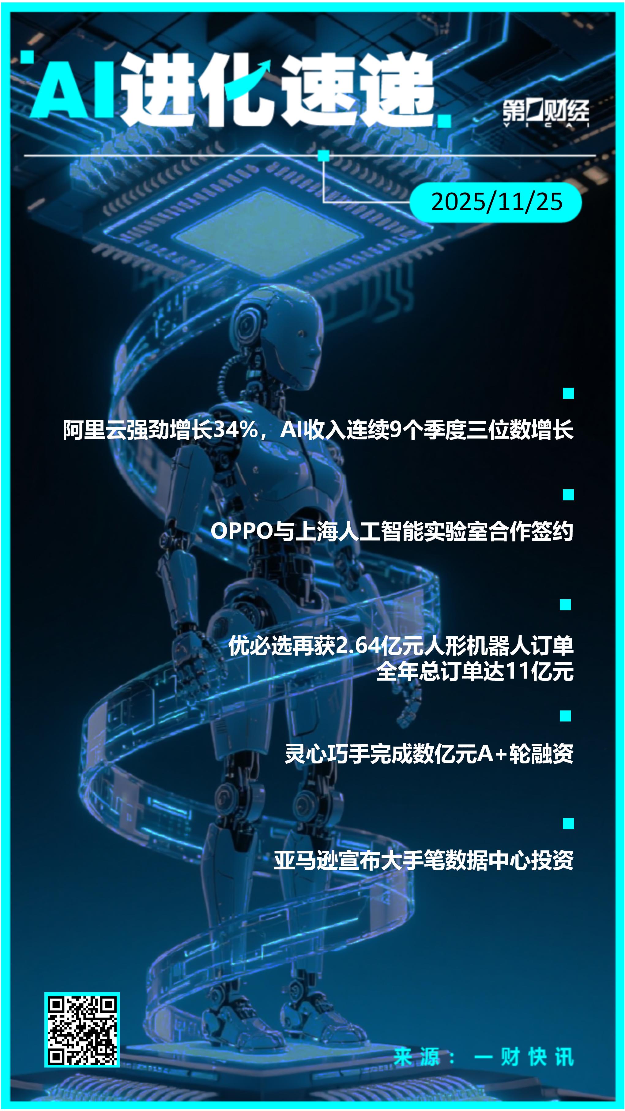 2025-11-25 20:37:53①阿里云强劲增长34%,AI收入连续9个季度三位数增长;