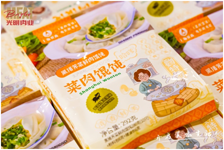 目前正在热映的沪语电影《菜肉馄饨》,借助“菜肉馄饨”这一上海市民的饮食和文化符号,平缓流淌间铺展开上海的市井百态,传递着家的温度与情感。光明肉业在今年进博会上同步首发电影联名款产品——爱森X菜肉馄饨系列新产品,实现文化IP与消费场景的深度融合,让“光明肉业=家的味道”这一认知,从理念落地为可感知、可品尝的体验。