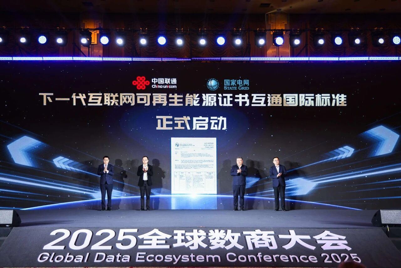 论坛期间,中国联通研究院党委书记、院长李红五,中国联通国际有限公司董事长、总经理冯兰晓协同国网山东省电力公司总会计师、党委委员武健,国际电信联盟ITU-T物联网和智慧城市研究组副主席罗松共同发布了下一代互联网可再生能源证书互通国际标准启动仪式。该活动为全球可再生能源证书体系打破区域壁垒、推动标准互认搭建了关键平台,将加速数字产业与绿色能源的协同转型,为全球“双碳”目标落地注入通信行业力量。