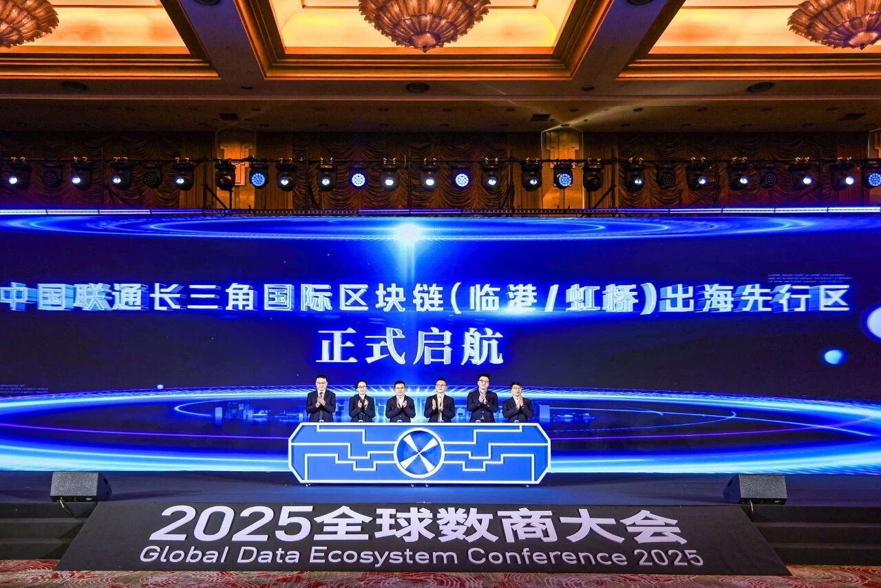 出海一张网,夯实国际化基础设施底座。上海市数据局城市数字化转型处副处长冯桂安,中国(上海)自贸区临港新片区管委会数据处副处长倪晓杰,虹桥管委会投资促进处副处长姚添乐,长三角数链(上海)网络基础设施有限公司首席运营官刘磊,中国联通国际有限公司南方中心总经理郭洪涛,中国联通上海市分公司政企BG本部总经理周晶共同启航中国联通长三角国际区块链(临港/虹桥)出海先行区。在全球数字化转型的浪潮下,区块链技术正成为重构跨境信任、提升贸易效率的核心引擎,而临港与虹桥作为长三角对外开放的前沿阵地,更是企业出海的战略枢纽。中国联通将以区块链技术为纽带,联动临港与虹桥的区位优势,打造企业出海的“快车道”与“避风港”。