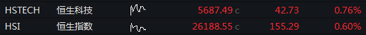 恒生指数高开0.6%,恒生科技指数涨0.76%。科网股普遍走强,阿里巴巴、快手涨逾3%;新能源车概念股走弱,蔚来跌逾6%。
