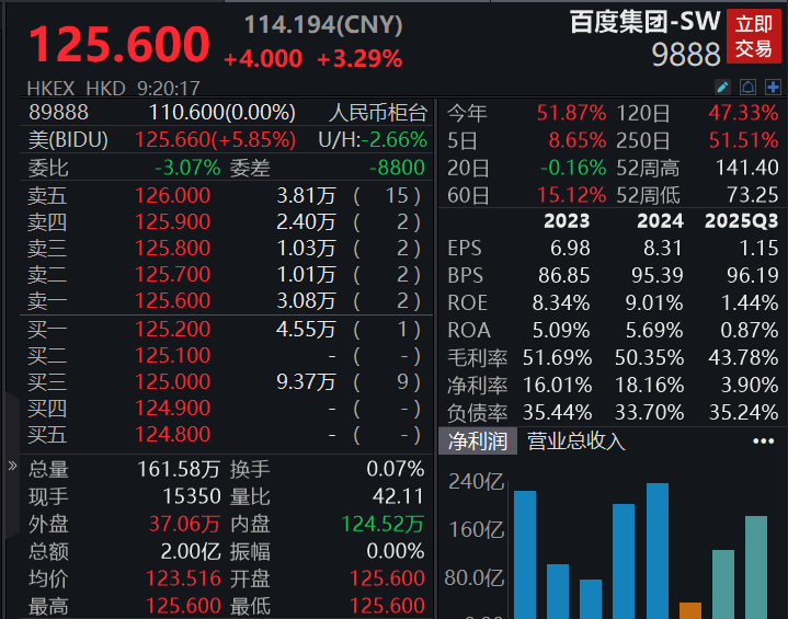 百度集团高开超3%。公司公告,目前正就拟议分拆及上市进行评估。倘若进行拟议分拆及上市,将须经相关监管审批程序,而公司并不保证拟议分拆及上市将会进行。