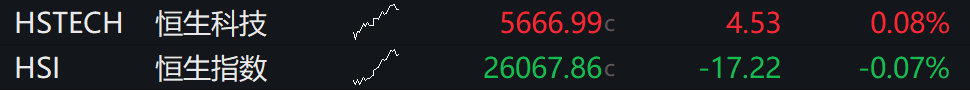 恒生指数微跌0.07%,恒生科技指数涨0.08%。两只新股今日上市,纳芯微平开,卓越睿新涨近24%。