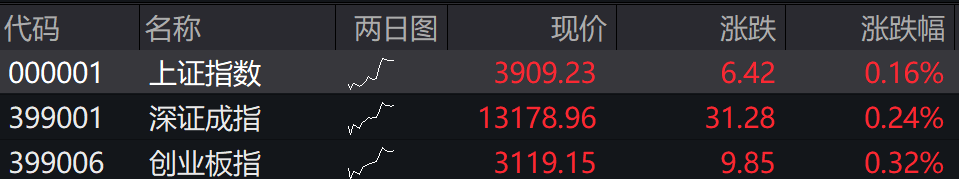 沪指高开0.16%,深成指高开0.24%,创业板指高开0.32%。盘面上,玻璃纤维股走强,商业航天,炒股软件、券商、大飞机指数涨幅居前。
