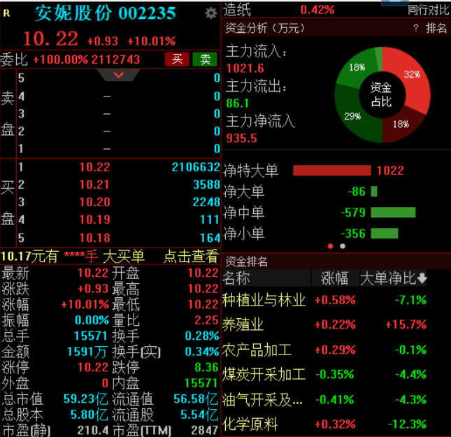 个股方面,安妮股份一字涨停。公司公告,控股股东拟约7.72亿元转让15.92%股份,交易完成后公司实控人将变更为李宁、王磊。