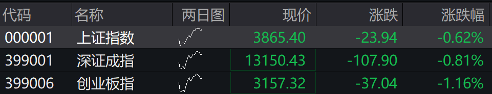 沪指低开0.62%,深成指低开0.81%,创业板指低开1.16%。