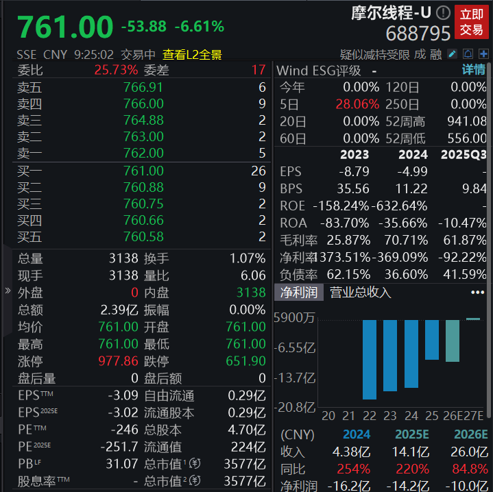 个股方面,摩尔线程低开超6%,公司公告,拟用不超过75亿元买保本理财产品,并回应称不影响募投项目的正常实施。