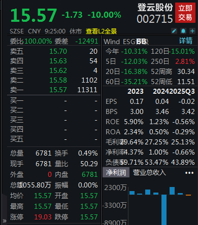 个股方面,登云股份开盘跌停,公司公告,涉嫌非法吸收公众存款罪,实控人杨涛被批准逮捕。