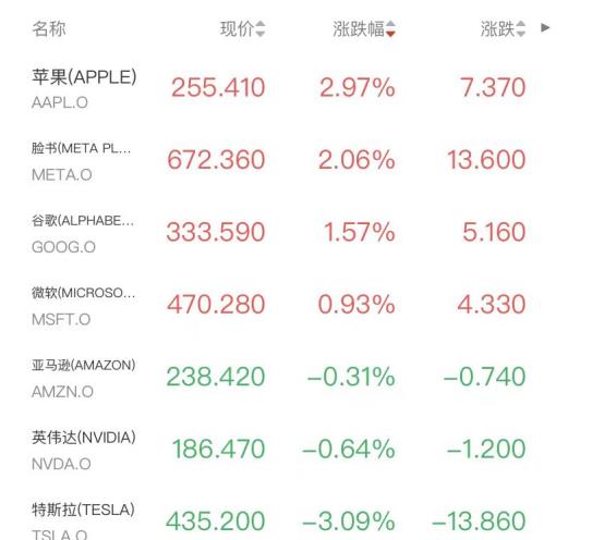 明星科技股涨多跌少,甲骨文、苹果涨3.0%,Meta涨2.0%,谷歌涨1.6%,微软涨0.9%,亚马逊跌0.3%,特斯拉跌3.1%。